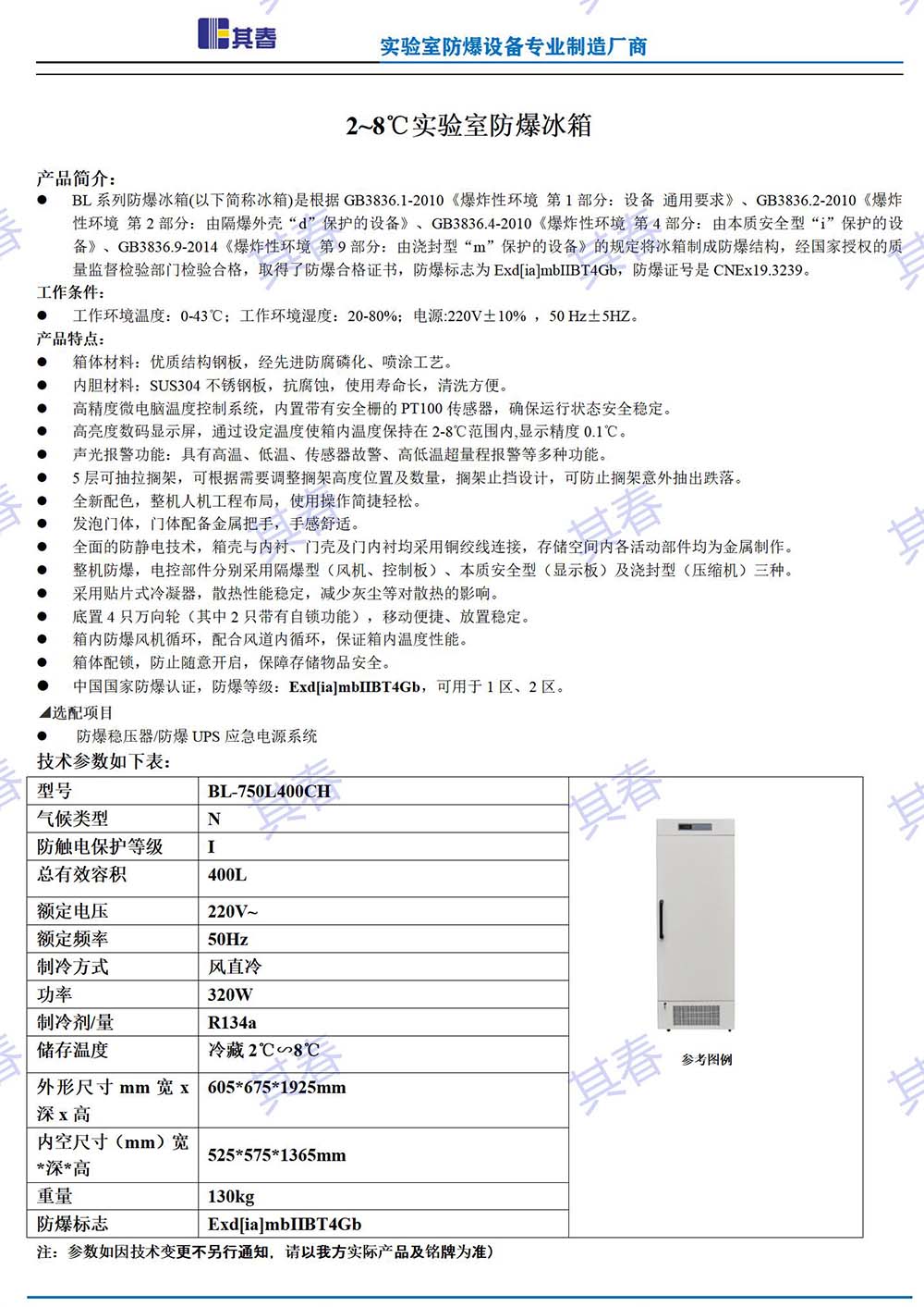 BL-750L400CH避光型防爆冷藏柜
